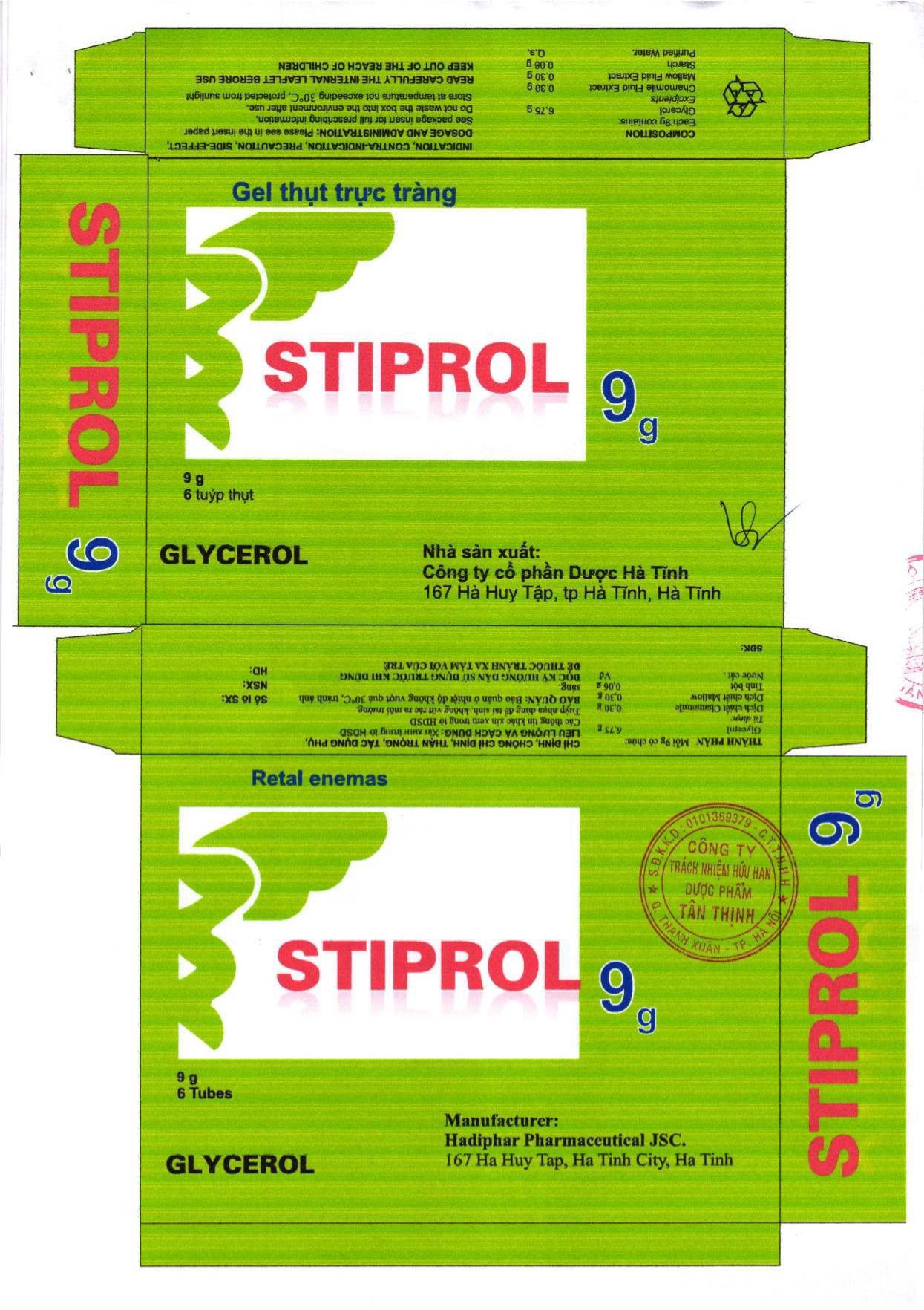Cách Dùng:Loại 3g: Dùng cho trẻ em – Bước 1: Tháo lắp tuýp STIPROL. Bóp một hai giọt ra tay. – Bước 2: Bôi trơn đầu dài của tuýp STIPROL. – Bước 3: Đút đầu lọ STIPROL vào sâu hậu môn rồi bóp dung dịch trong lọ hậu môn. Dùng 1-2 tuýp thụt trong vòng 24 giờ.Đối Tượng Sử Dụng:Mẫn cảm với các thành phần của thuốcTác Dụng Không Mong Muốn: